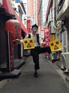 大道芸人歴は、2025年で25年になります。演目は、世界的名作をおとぼけB級サイレントコメディで演じています。